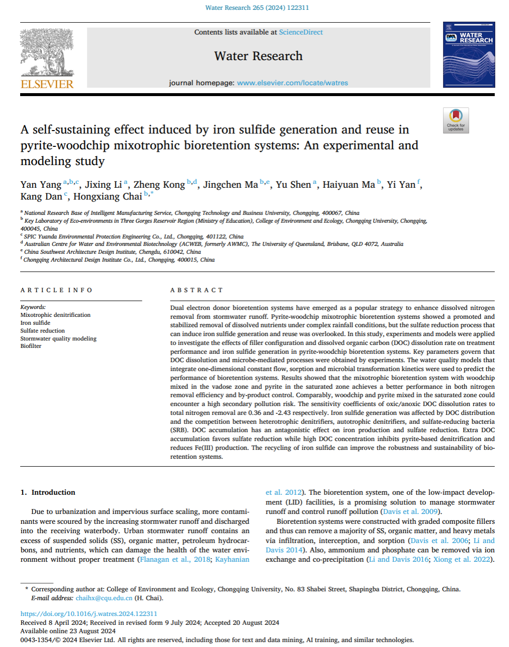 当前位置: 首页 >> 科研动态 >> 正文 国合基地智慧水务管理团队在城市面源污染控制方向研究取得突破性进展 时间:2024年09月26日 07:30 作者:国合基地 近期,国合基地智慧水务管理团队阳妍助理研究员与重庆大学柴宏祥教授团队合作,在环境领域国际著名学术期刊《Water Research》(环境科学与生态学1区Top,影响因子:12.8)上发表了题为“A self-sustaining effect induced by iron sulfide generation and reuse in pyrite-woodchip mixotrophic bioretention systems: an experimental and modeling study”的学术论文,在城市面源污染溶解性氮控制方向取得了突破性进展。 该研究采用实验与建模相结合的方法,深入探究了影响硫铁矿-木屑混合营养生物滞留系统中硫化铁形成的影响因素及微生物互作机理,量化了多种污染物在生物滞留系统中的迁移、转化规律,揭示了异养反硝化菌、自养反硝化菌和硫酸盐还原菌对硫化铁形成的竞争机制,阐明了DOC的积累对铁产生和硫酸盐还原的拮抗作用机理。该研究为增强生物滞留系统脱氮的稳定性和可持续性提供了新的思路和途径。 该成果得到了国家自然科学基金(52300118),重庆市教育委员会科学技术研究项目(KJQN202300826),永利集团3044am高层人才科研启动项目(2356011)的资助。 文章链接:https://doi.org/10.1016/j.watres.2024.122311 上一条:永利集团3044am国合基地青年博士在发表高水平学术成果上取得新突破 下一条:“携手全球创新,推动电子健康发展” ——永利集团3044am推动金砖国家电子健康研究工作组协会联盟启动 【关闭】